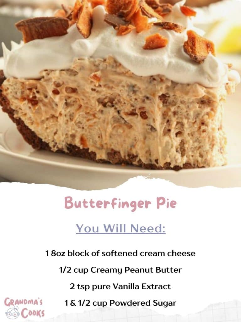 Introduction: Indulge in a heavenly dessert experience with our delightful Butterfinger Pie! This decadent pie features a velvety smooth peanut butter filling, infused with crunchy bits of Butterfinger candy, all