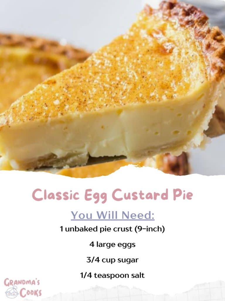 Introduction: Classic Egg Custard Pie is a timeless dessert that brings together the creamy richness of custard with the comfort of a flaky pie crust. This old-fashioned treat is simple